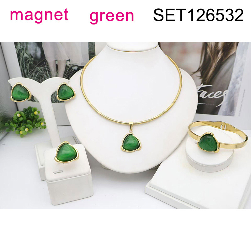 Level B Stainless Steel New Trendy Women Jewelry Triangle Green Opal Golden Magnet buckle 4pcs SET