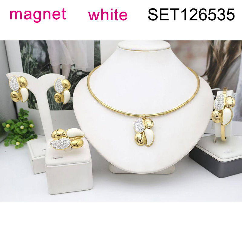Level B Stainless Steel New Trendy Women Jewelry White Water Drip Golden Magnet buckle 4pcs SET