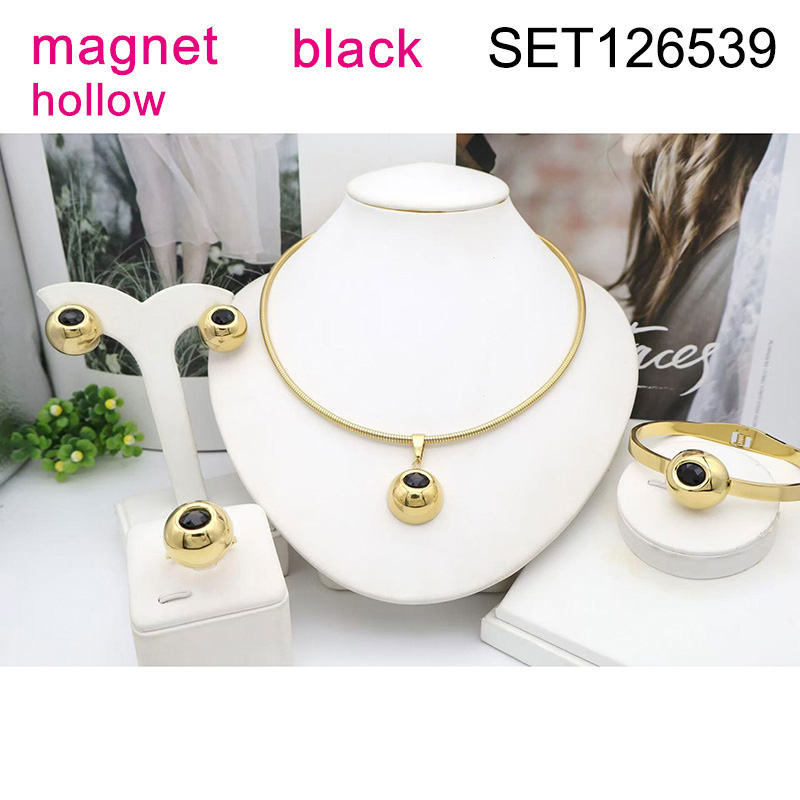 Level B Stainless Steel New Trendy Women Jewelry Hollow Round Black Stone Golden Magnet buckle 4pcs SET