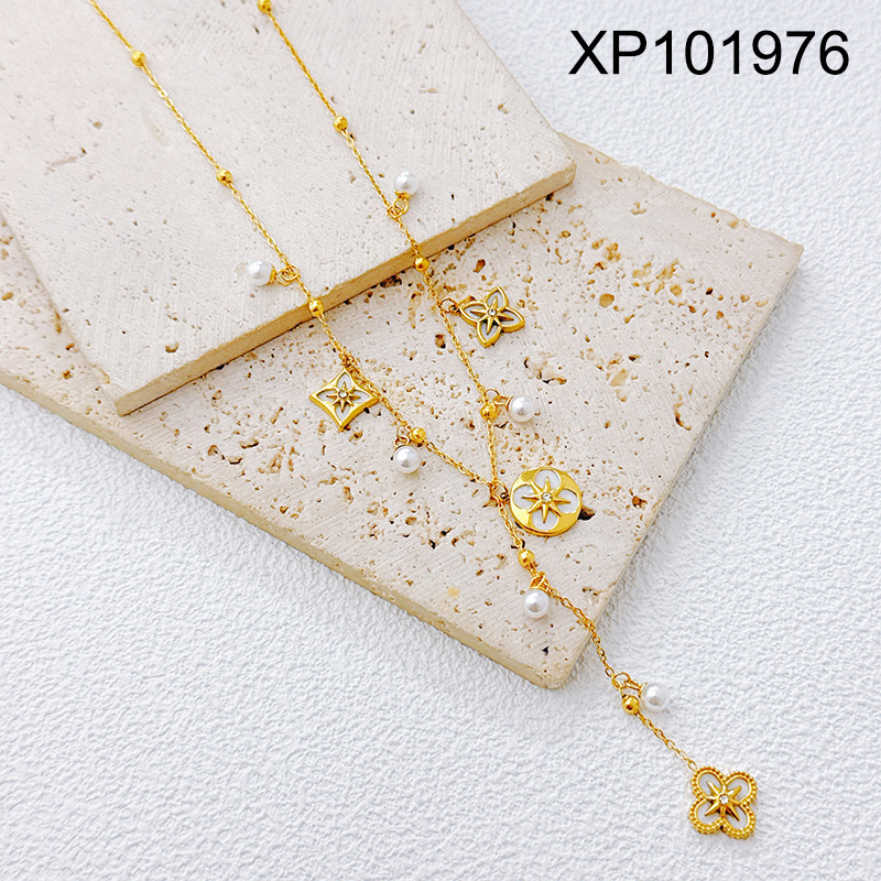Level B Stainless Steel New Trendy Women Jewelry Pearl Style/Plastic Beads SYC Eight-Pointed Star Golden Pendant