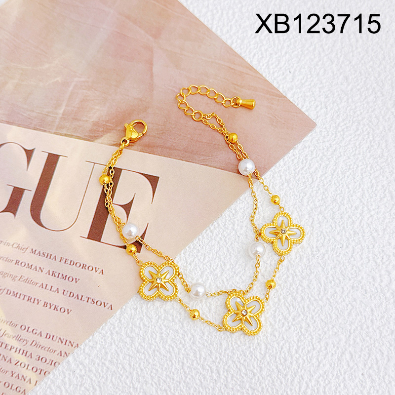 Level B Stainless Steel New Trendy Women Jewelry Pearl Style/Plastic Beads Two Layers Chain SYC Eight-Pointed Star Golden Bracelet