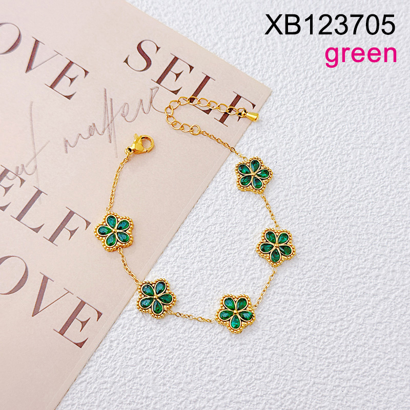 Home > Level B Stainless Steel New Trendy Women Jewelry Green Flower Golden Bracelet