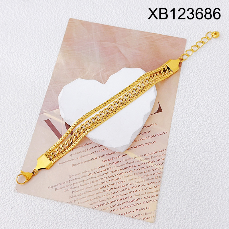 Level B Stainless Steel New Trendy Women Jewelry Three Layer Chain Golden Bracelet
