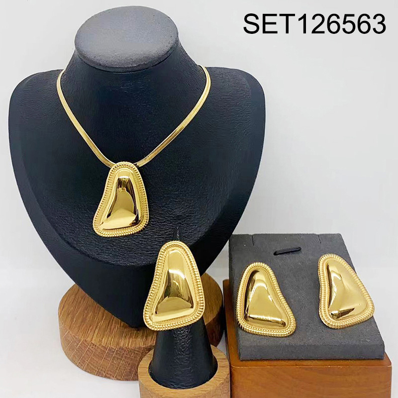 Level B Stainless Steel New Trendy Women Jewelry Geometry Golden 3pcs SET