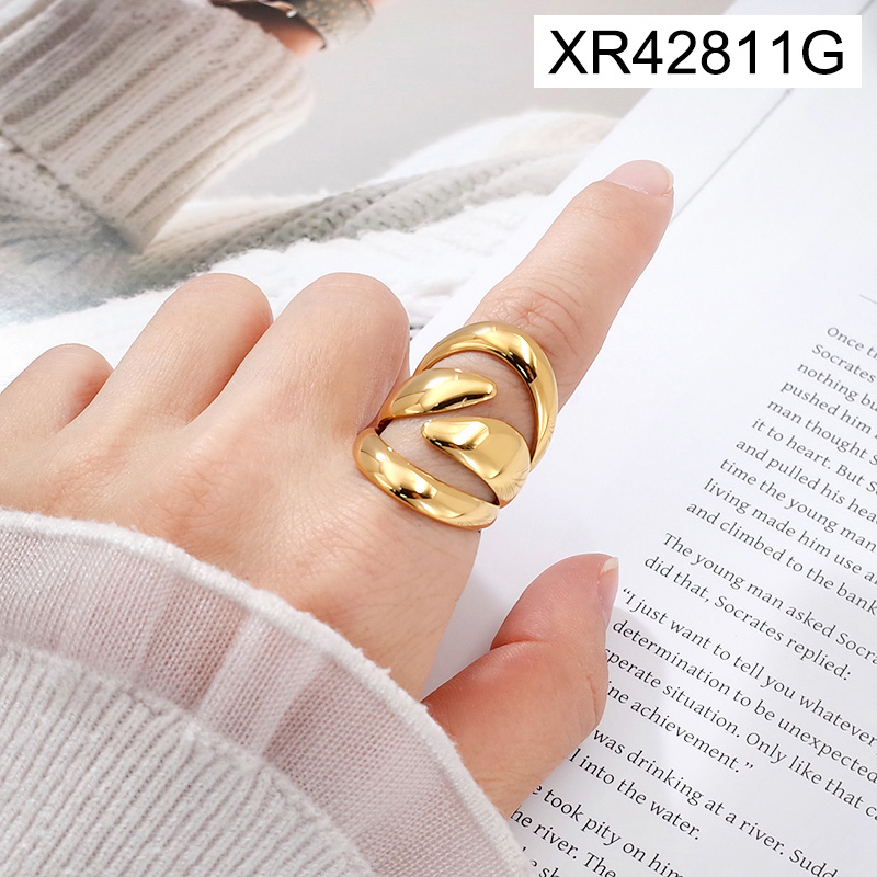 Level A Stainless Steel New Trendy Women Jewelry Golden Open Rings;Ring size can be adjusted freely