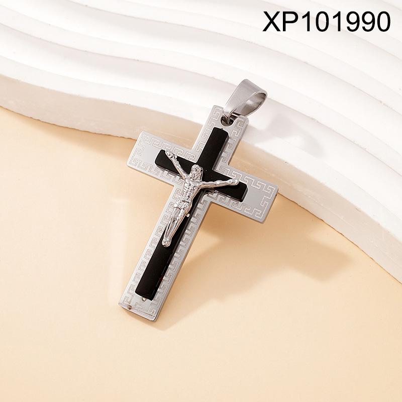 Level B Stainless Steel New Trendy Man Jewelry Cross Jesus Two Tone Pendant