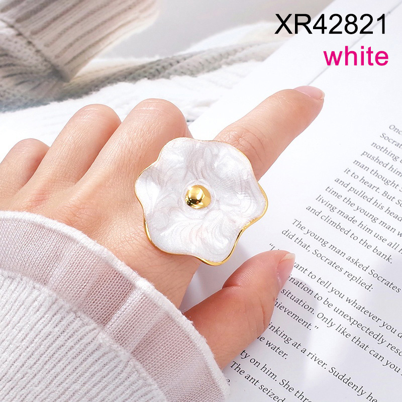 Level C Stainless Steel New Trendy Women Jewelry Drip Oil/Enamel White Flower Golden Open Rings;Ring size can be adjusted freely