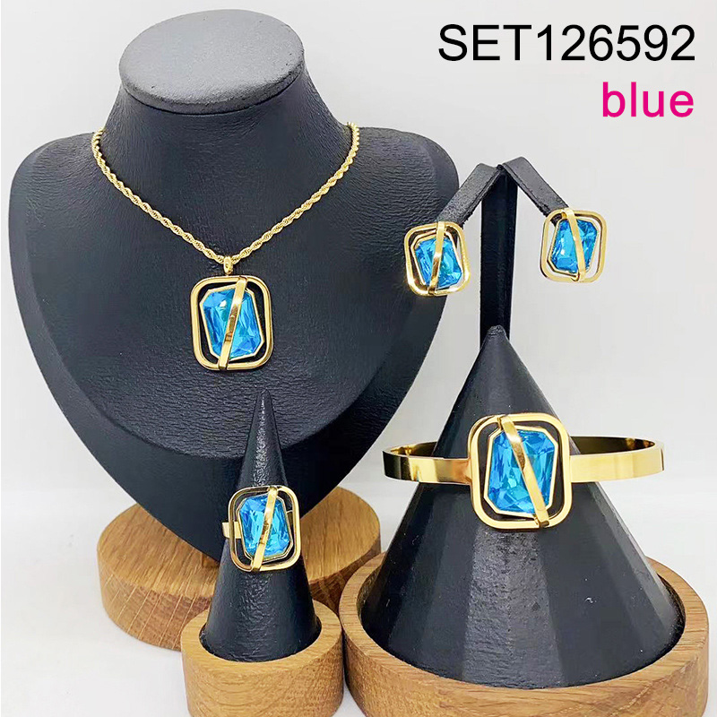 Level B Stainless Steel New Trendy Women Jewelry Blue Glass Rectangle Golden 4pcs SET