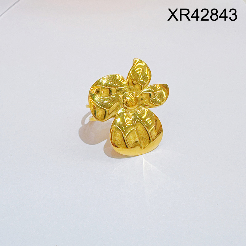 Level C Stainless Steel New Trendy Women Jewelry Flower Golden Open Rings;Ring size can be adjusted freely