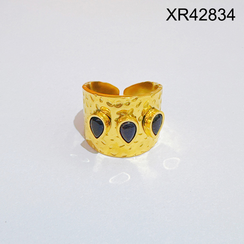 Level C Stainless Steel New Trendy Women Jewelry Water Drip Golden Open Rings;Ring size can be adjusted freely