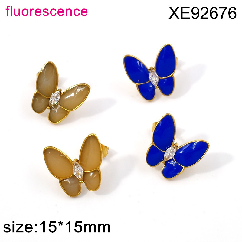 Home > Level A Stainless Steel New Trendy Women Jewelry Animal Butterfly Fluorescent Enamel Earrings