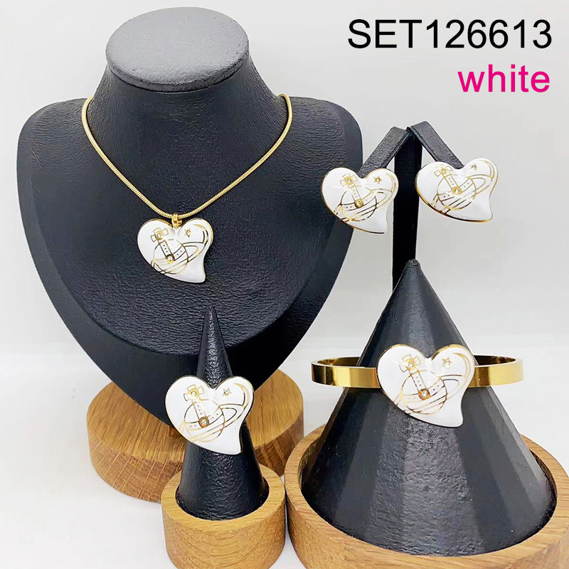 Level B Stainless Steel New Trendy Women Jewelry Drip Oil/Enamel White Heart Planet Golden 4pcs SET