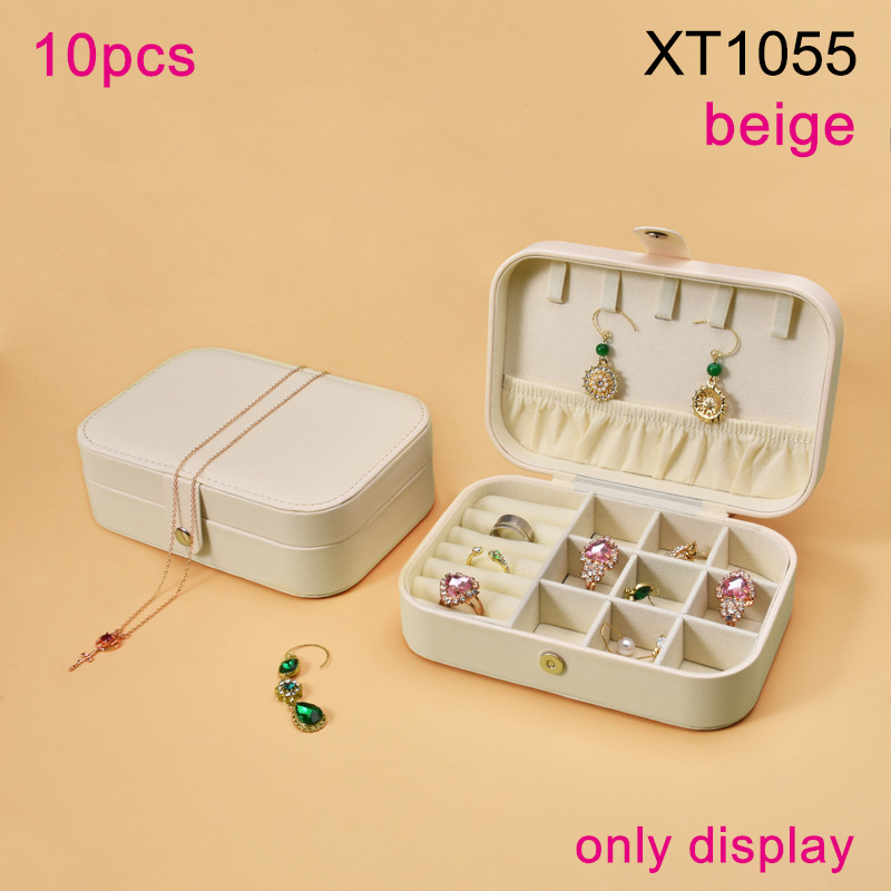 Home > Fashion Jewelry Portable Multi Functional Storage Beige Rectangle PU leather Jewelry box;Only display