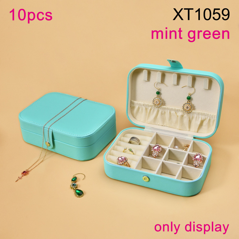 Fashion Jewelry Portable Multi Functional Storage Mint green Rectangle PU leather Jewelry box;Only display
