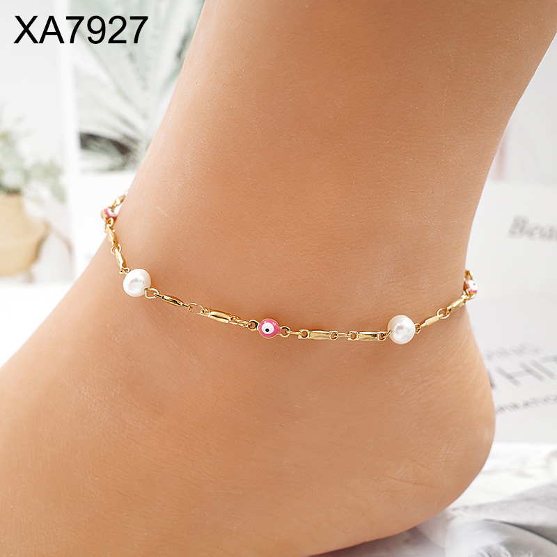 Level B Stainless Steel New Trendy Women Jewelry Pearl Style/Plastic Beads Eye Golden Anklet
