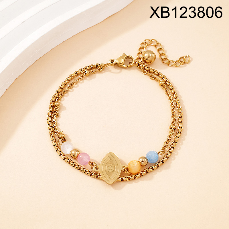 Level B Stainless Steel New Trendy Women Jewelry Two Layers Chain Eye Golden Bracelet
