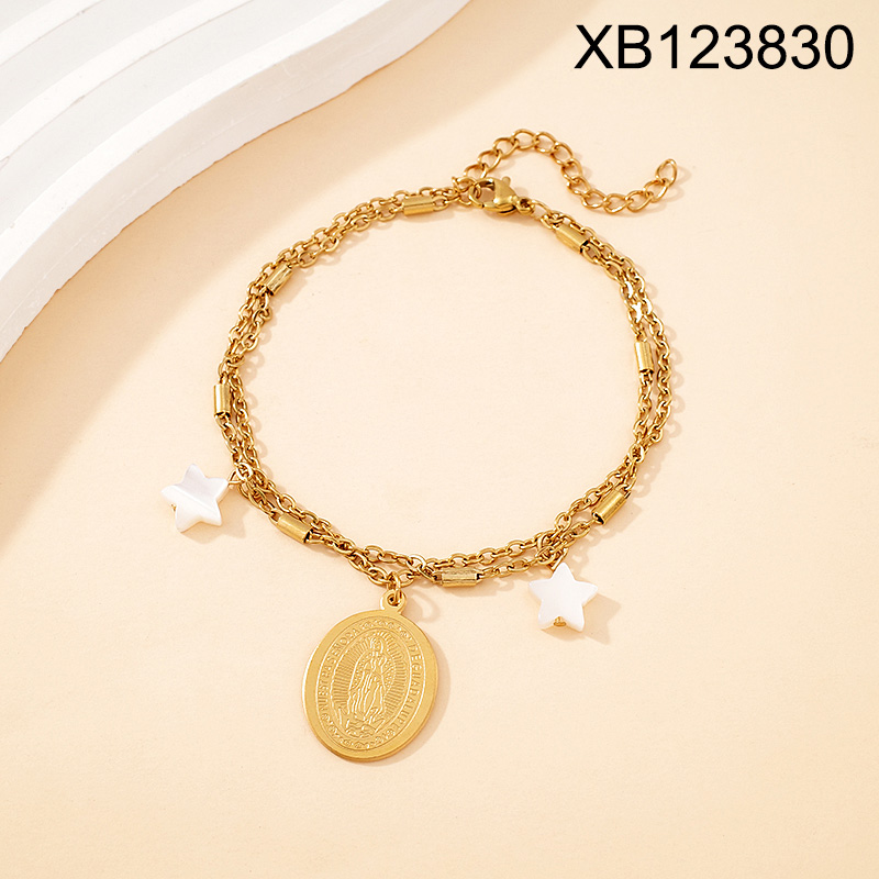 Level B Stainless Steel New Trendy Women Jewelry Two Layers Chain Religion Star Golden Bracelet