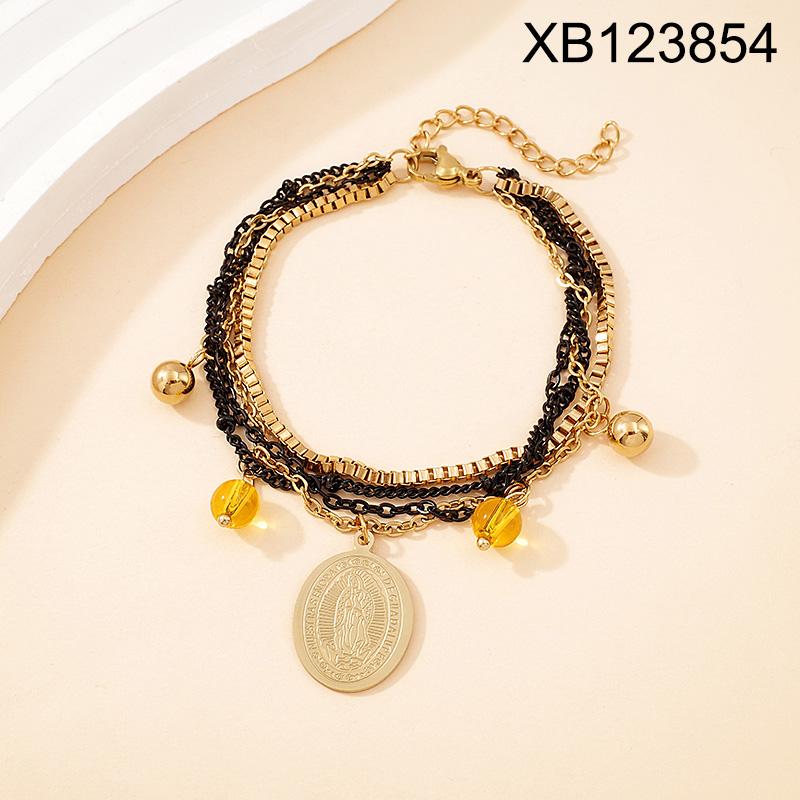 Level B Stainless Steel New Trendy Women Jewelry Four Layers Chain Religion Two Tone Bracelet