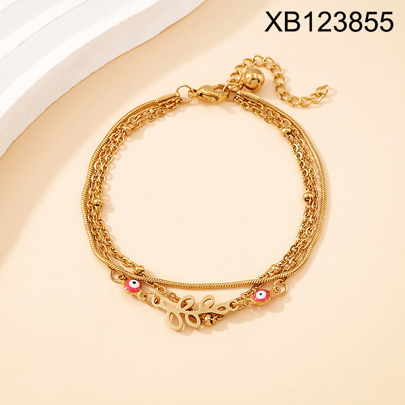 Level B Stainless Steel New Trendy Women Jewelry Three Layers Chain Leaf Golden Bracelet