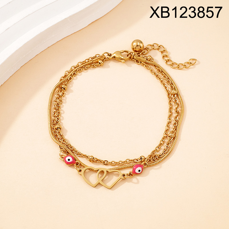 Level B Stainless Steel New Trendy Women Jewelry Three Layers Chain Love Golden Bracelet