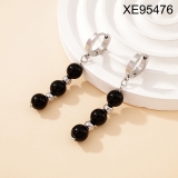 Level B Stainless Steel New Trendy Women Jewelry Pearl Style/Plastic Beads Steel color Hoop Earrings