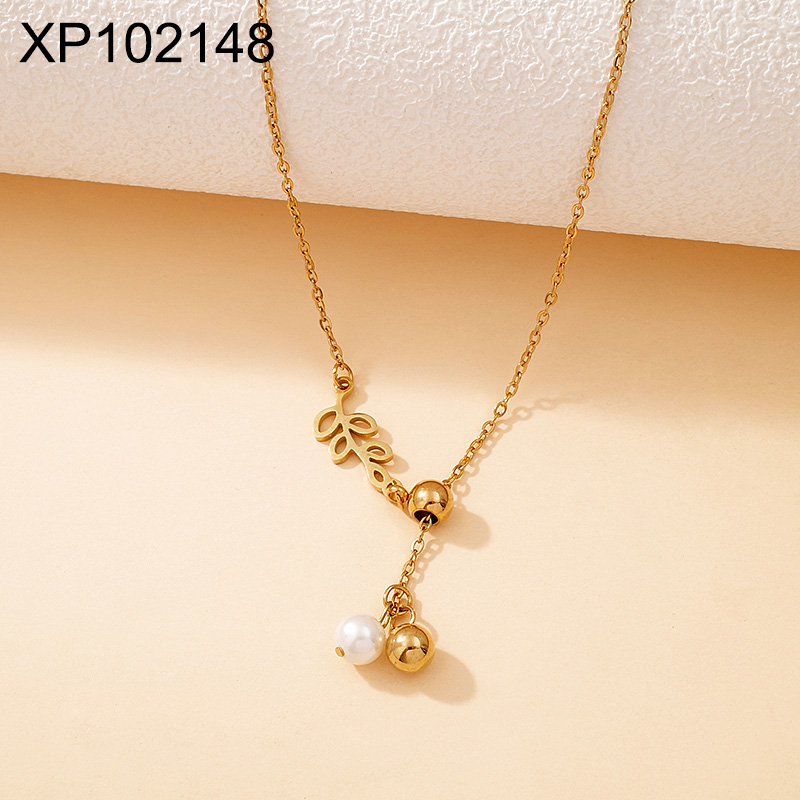 Level B Stainless Steel New Trendy Women Jewelry Pearl Style/Plastic Beads Leaf Golden Pendant