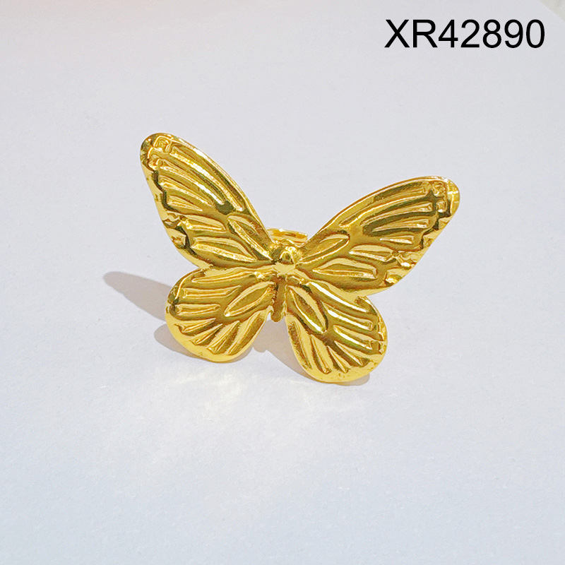Level C Stainless Steel New Trendy Women Jewelry Animal Butterfly Golden Open Rings;Ring size can be adjusted freely