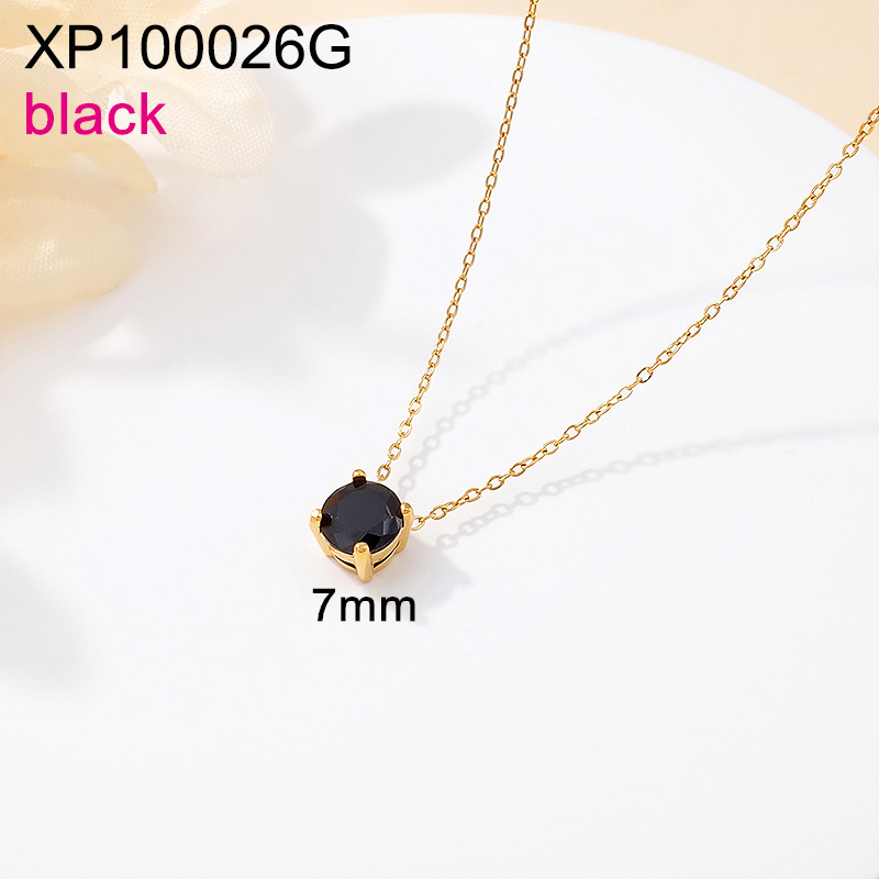 Home > Level A Stainless Steel New Trendy Women Jewelry Round Black Glass zirconium Golden Pendant