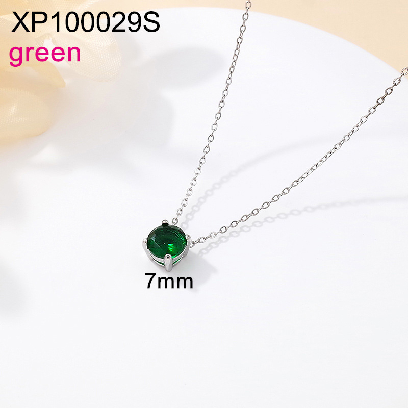 Level A Stainless Steel New Trendy Women Jewelry Round Green Glass zirconium Steel color Pendant