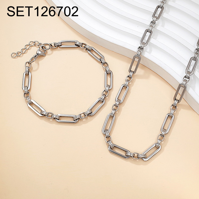 Home > Level B Stainless Steel New Trendy Man Jewelry Steel color Chain SET