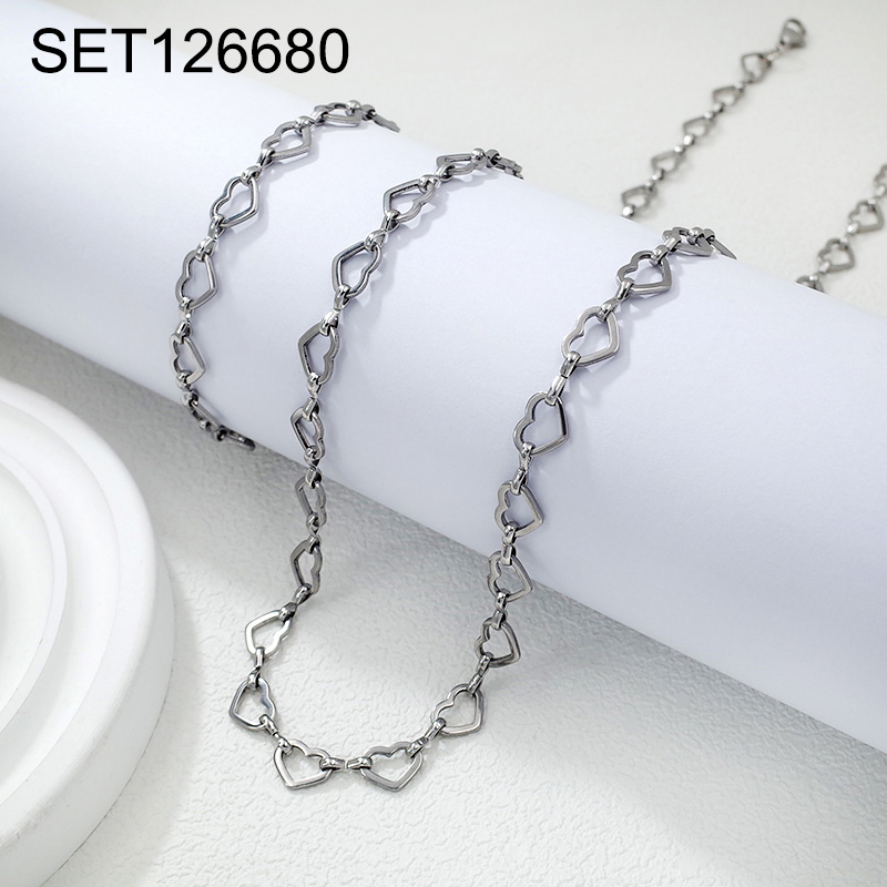 Home > Level B Stainless Steel New Trendy Women Jewelry Heart Steel color Valentine's Day Chain SET