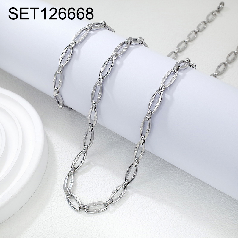 Home > Level B Stainless Steel New Trendy Man Jewelry Steel color Chain SET
