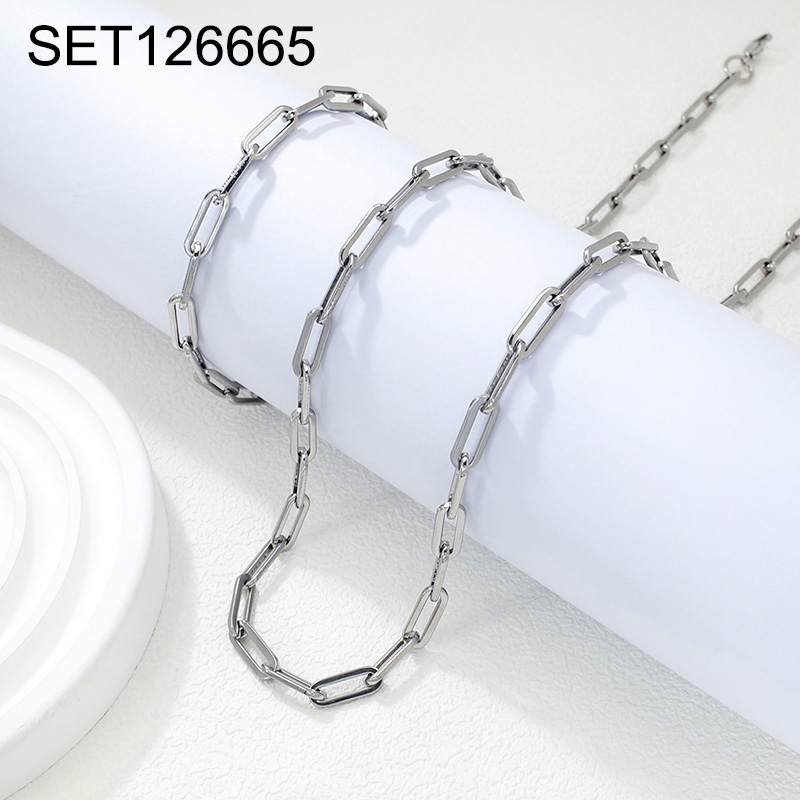Level B Stainless Steel New Trendy Man Jewelry Steel color Chain SET