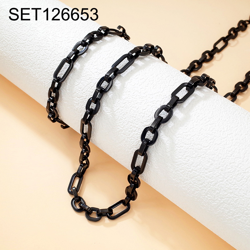 Level B Stainless Steel New Trendy Man Jewelry Plating Black Chain SET