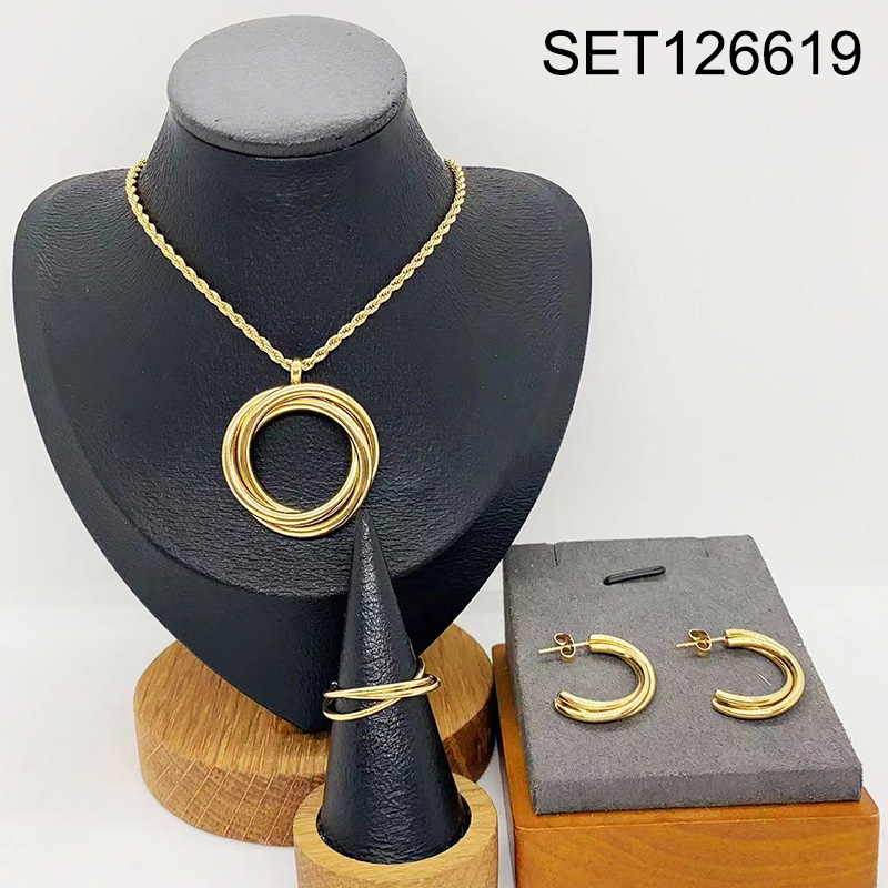 Level B Stainless Steel New Trendy Women Jewelry Round Golden 3pcs SET