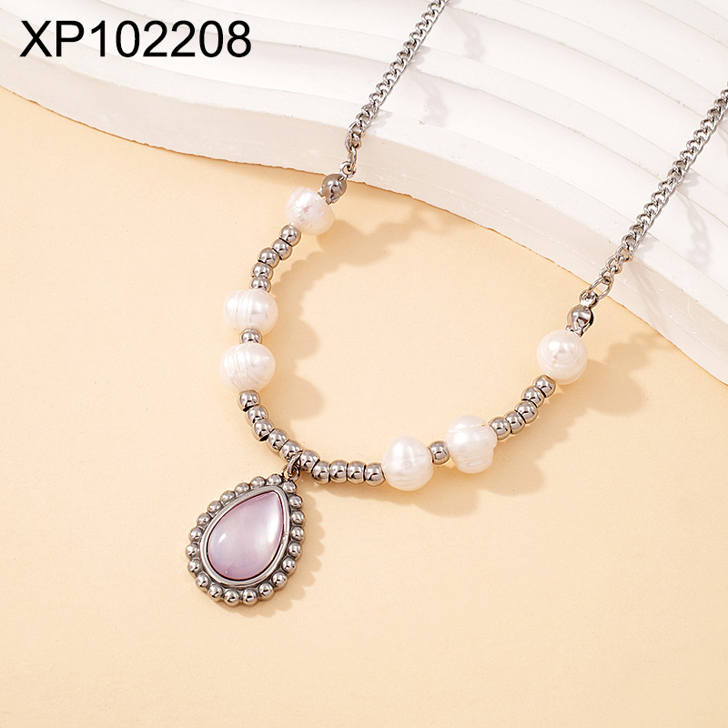 Level B Stainless Steel New Trendy Women Jewelry Pearl Style/Plastic Beads Water Drip Steel color Pendant