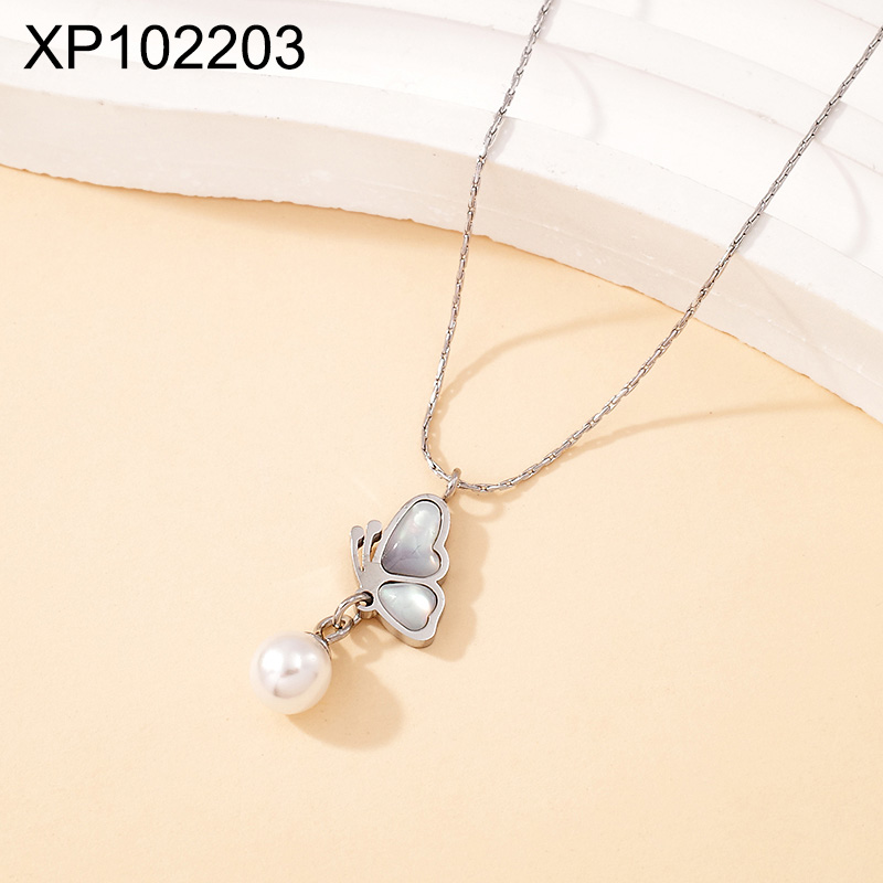 Level B Stainless Steel New Trendy Women Jewelry Pearl Style/Plastic Beads Animal Butterfly Steel color Pendant