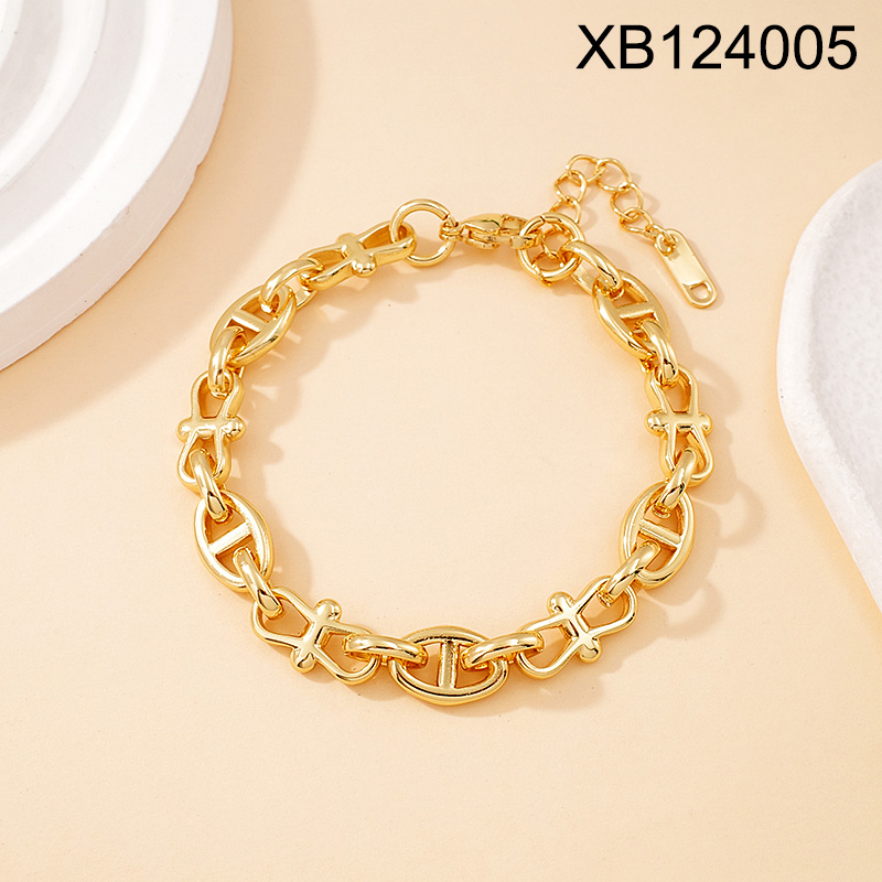 Home > Level B Stainless Steel New Trendy Women Jewelry Oval Pig nose Golden Bracelet