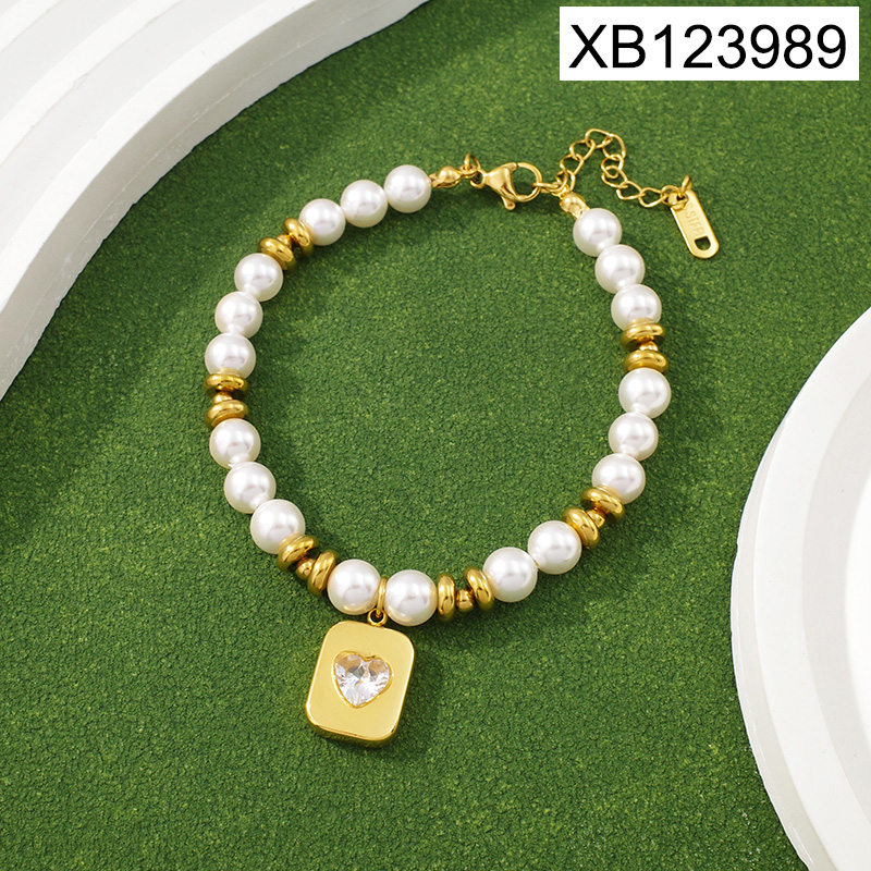 Level B Stainless Steel New Trendy Women Jewelry Pearl Style/Plastic Beads Square Heart Golden Bracelet