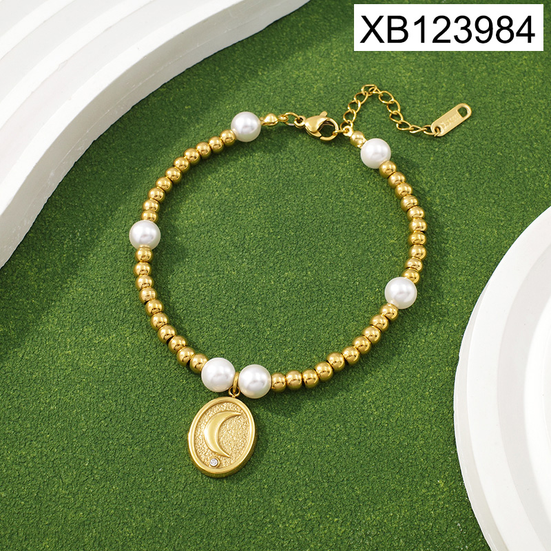 Home > Level B Stainless Steel New Trendy Women Jewelry Pearl Style/Plastic Beads Oval Golden Bracelet