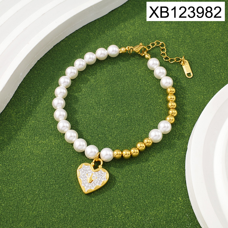 Level B Stainless Steel New Trendy Women Jewelry Pearl Style/Plastic Beads Heart Golden Valentine's Day Bracelet
