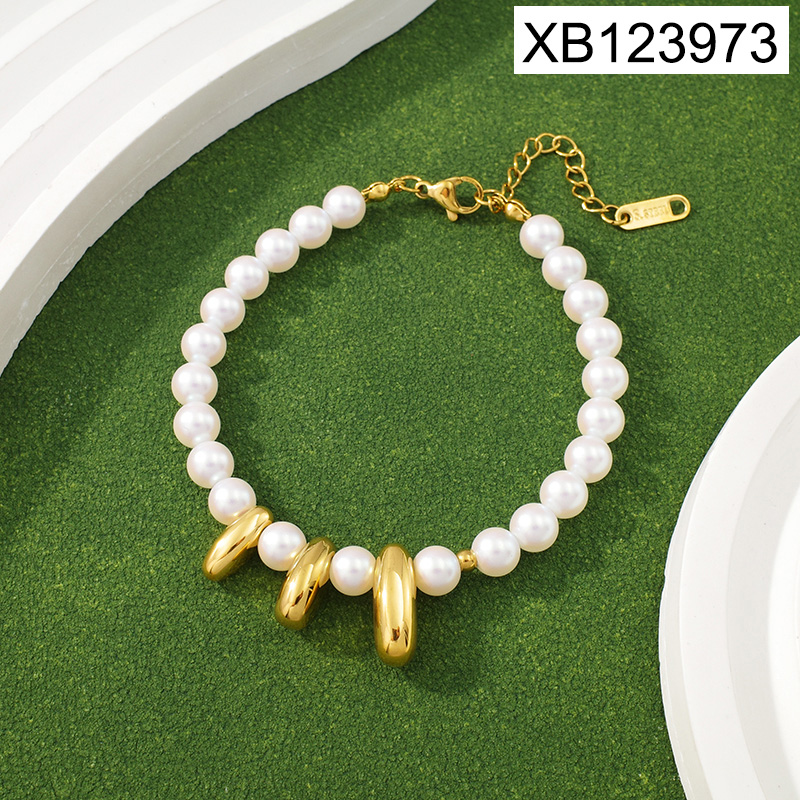 Level B Stainless Steel New Trendy Women Jewelry Pearl Style/Plastic Beads Golden Bracelet
