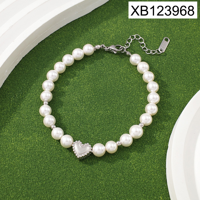 Level B Stainless Steel New Trendy Women Jewelry Pearl Style/Plastic Beads Heart Steel color Bracelet