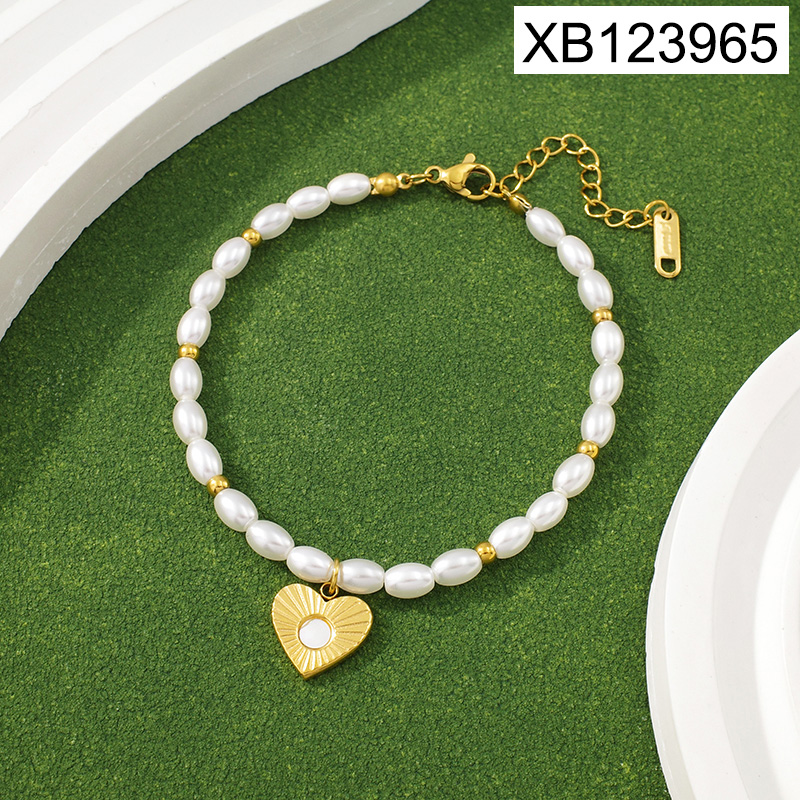 Home > Level B Stainless Steel New Trendy Women Jewelry Pearl Style/Plastic Beads Heart Golden Bracelet