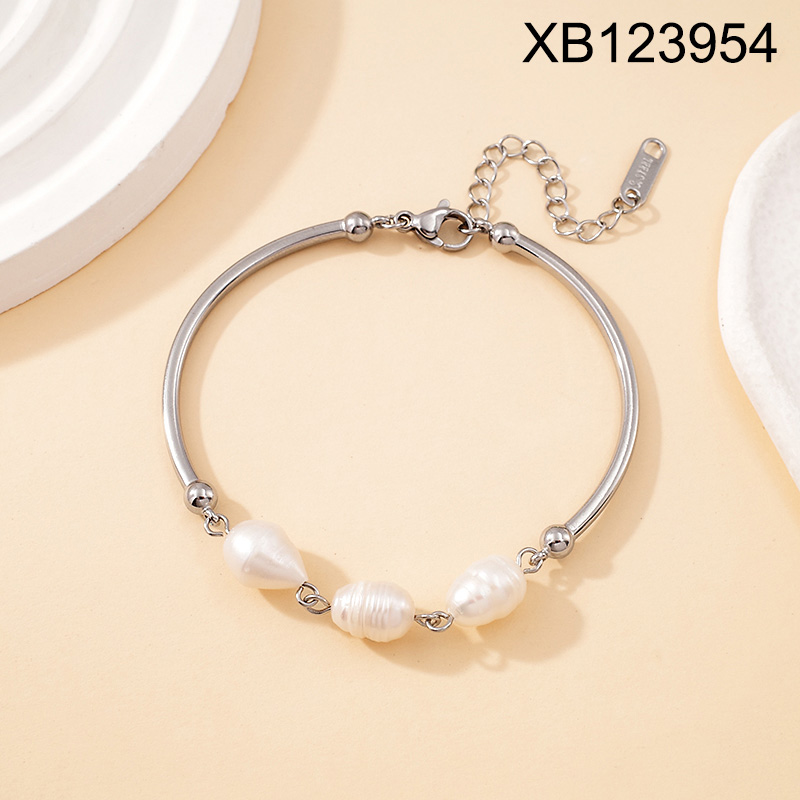 Level B Stainless Steel New Trendy Women Jewelry Pearl Style/Plastic Beads Steel color Bracelet