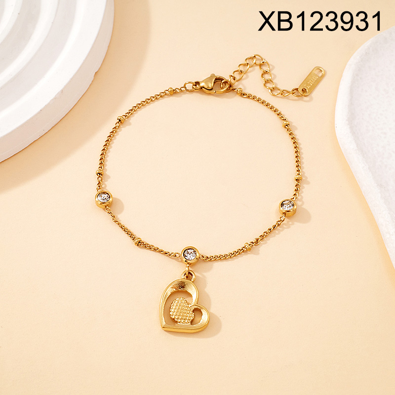 Home > Level B Stainless Steel New Trendy Women Jewelry Heart Golden Bracelet