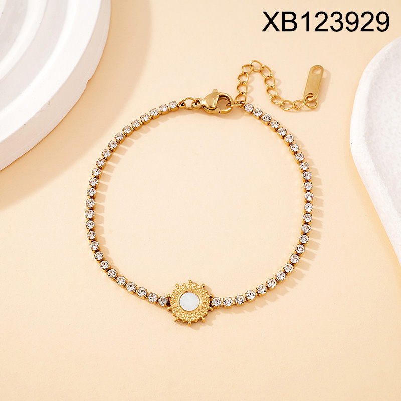 Home > Level B Stainless Steel New Trendy Women Jewelry White Rhinestone Flower Golden Bracelet