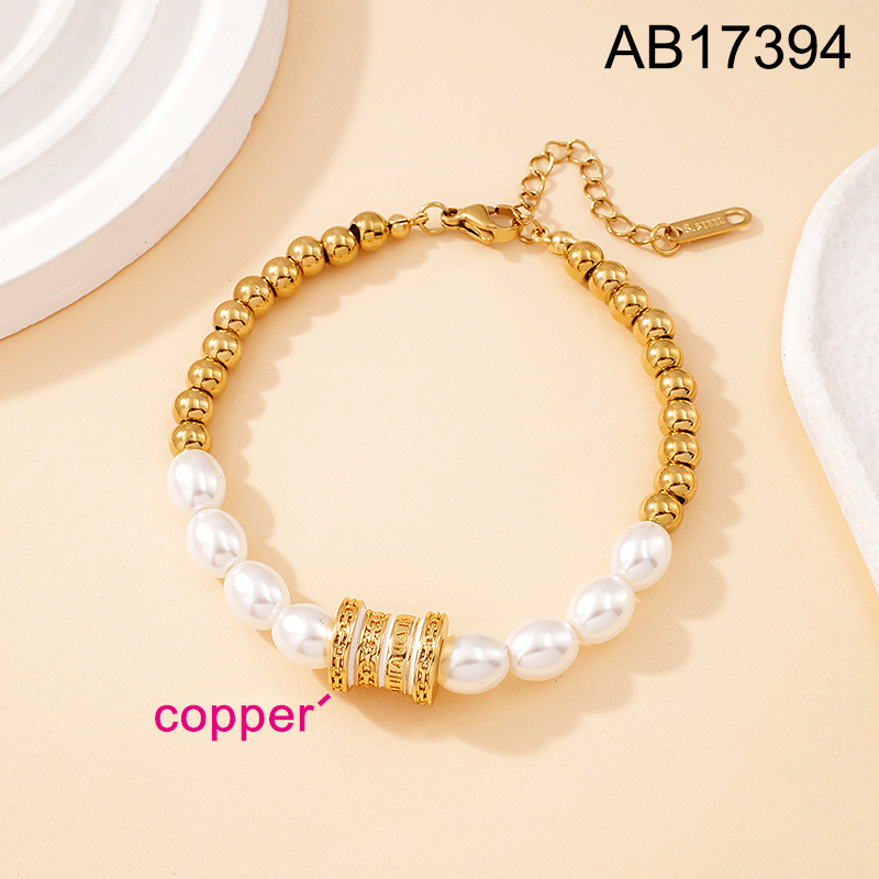 Home > Level B Fashion Jewelry New Trendy Women Jewelry Pearl Style/Plastic Beads Slender waist Golden Elastic Bracelet;Material:copper (cobre)