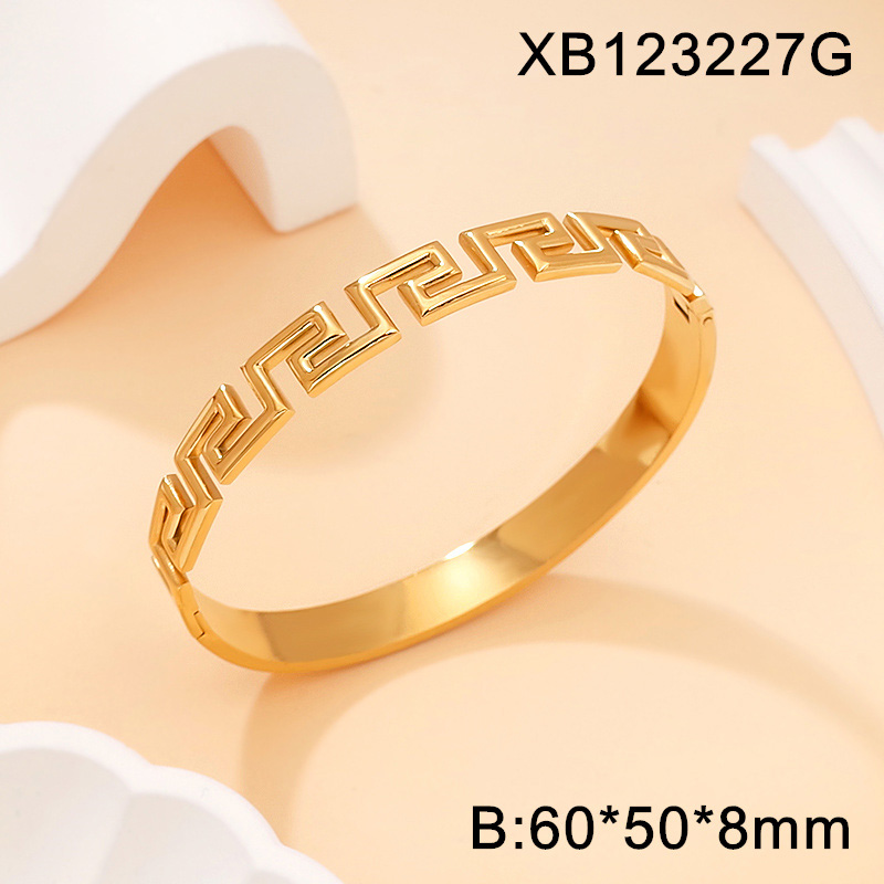 Home > Level A Stainless Steel New Trendy Women Jewelry Great Wall Pattern Golden Bangle
