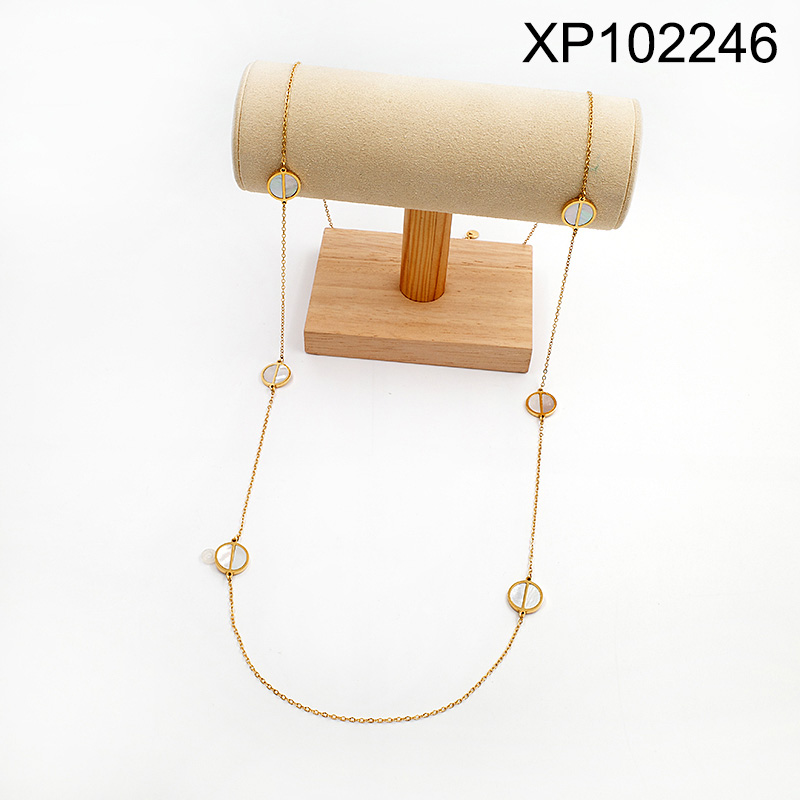 Home > Level A Stainless Steel New Trendy Women Jewelry Round Golden Sweater Chain Pendant